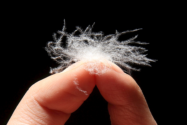羽絨有一個(gè)三維結(jié)構(gòu),所以它可以“擴(kuò)展”。在相同的重量下,絨毛中的每一簇細(xì)絲都能比其他任何材料容納更多的空氣。每克羽絨大約有70000根細(xì)絲,這些細(xì)絲相互重疊、纏繞形成一層保護(hù)層,通過(guò)保持空氣在適當(dāng)?shù)奈恢脕?lái)保持溫暖和絕緣。