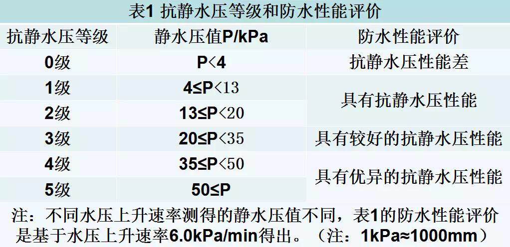 數(shù)據(jù)來自:GB/T4744-2013《紡織品 防水性能的檢測和評(píng)價(jià) 靜水壓法》