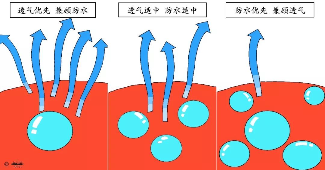 透氣性關(guān)乎舒適度——人體散發(fā)的汗液以水蒸氣形式通過沖鋒衣傳導(dǎo)到外界,從而避免汗液集聚冷凝在沖鋒衣內(nèi),是沖鋒衣舒適性的關(guān)鍵。