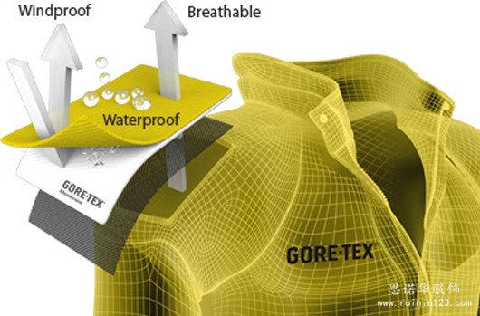 防水薄膜以GORE-TEX?的ePFTE(聚四氟乙烯)薄膜最為著名,其它品牌多采用PU涂層,功能有強有弱,體驗也各不相同。沖鋒衣采用了GORE-TEX?的面料。目前市面上主流的衡量標準是通過測試面料可以承受多少毫米水柱(mmH2O,或mm)的壓強,一般沖鋒衣至少可以達到3000mm,而在極限環(huán)境下的沖鋒衣和專業(yè)滑雪服可以達到20000mm以上。在沖鋒衣制作中專業(yè)沖鋒衣廠家思諾華制衣也都會根據(jù)客人的指數(shù)要求進行防水面料的訂購。
