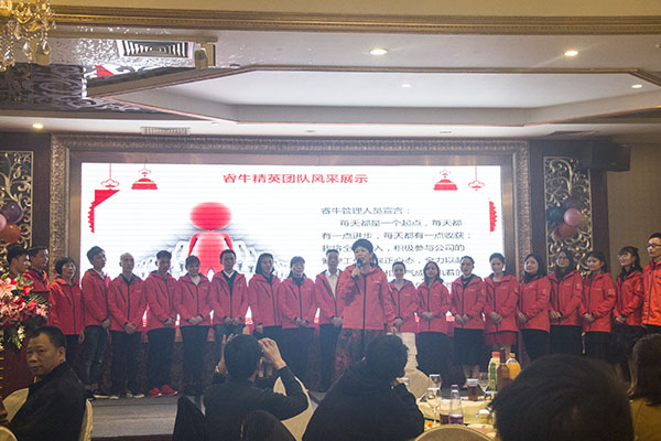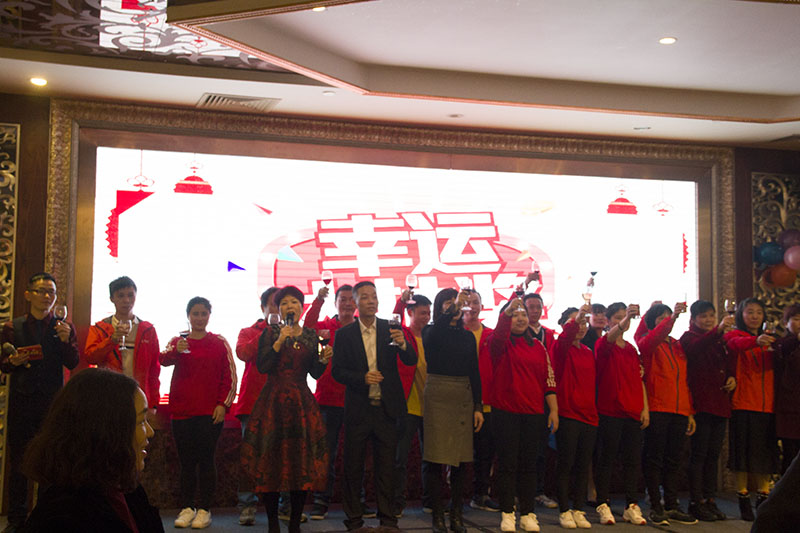 睿牛制衣有限公司總經理華姐攜管理人員向全場嘉賓敬酒,隨著激動人心的抽獎及歌舞助興,再次將年會的氣氛推向了高潮!