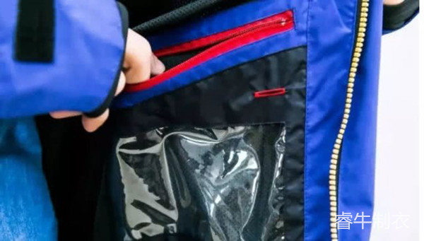 基于沖鋒衣簡潔的要求,它的兜袋一般很少。對于滑雪服來說就不同了,為了讓滑雪者收存更多東西,比如滑雪鏡、手套、手機(jī)之類的個人用品,滑雪服安排的兜袋很多,而且開口也很大,因為滑雪者需要帶著手套取放物品。開口處一般使用拉鏈密封,防止在劇烈運動時物品的丟失,需要特別注意的是:滑雪服的小口袋很多,材料柔軟的是為了存放手機(jī)和滑雪鏡,質(zhì)地透明的是用來存放滑雪時間卡,這些細(xì)節(jié)都是服裝設(shè)計人員充分考慮到使用者的實際需求后所設(shè)計的。