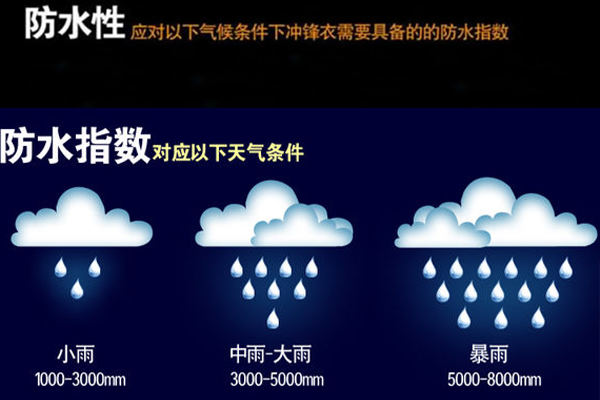 所謂防水,是指無論你是坐在潮濕的地方,抑或是身處于風雨交加的環(huán)境中,它都能夠快速而又有效地阻擋雨水和霜雪的入侵,使水無法滲透入衣服內讓你感到潮濕和寒冷;所謂透氣,是指當你進行大運動量的戶外運動時,身體自然流汗,皮膚呼出大量濕氣,如果不能在短時間內排出體外,必然會導致汗氣困在身體和衣服之間,令人感覺渾身濕透,在陰雨天氣下,更加潮濕、寒冷。