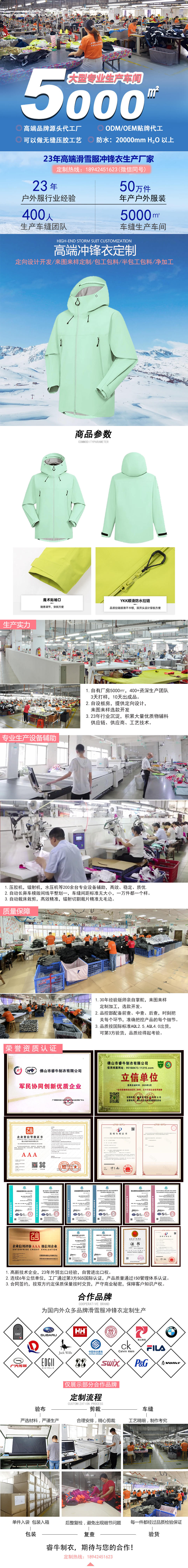優(yōu)質(zhì)面料:專業(yè)高端沖鋒衣定制23年沉淀優(yōu)質(zhì)供應(yīng)商資源,可根據(jù)客戶需求精選優(yōu)質(zhì)面料。