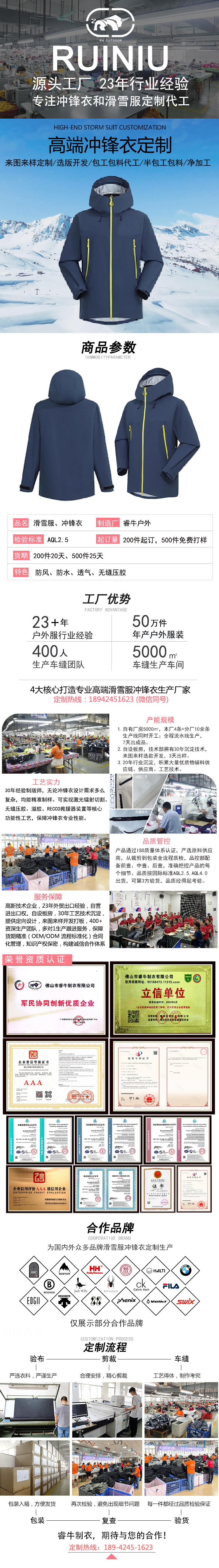 沖鋒衣加工廠(chǎng)來(lái)圖來(lái)樣定制代工防水壓膠沖鋒衣