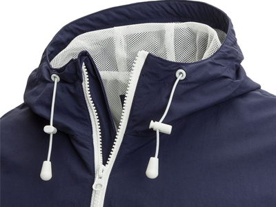 風(fēng)衣內(nèi)襯:風(fēng)衣內(nèi)里采用網(wǎng)布構(gòu)造。在劇烈運動時,可加速透氣排濕,身體不悶熱,衣服不粘身。