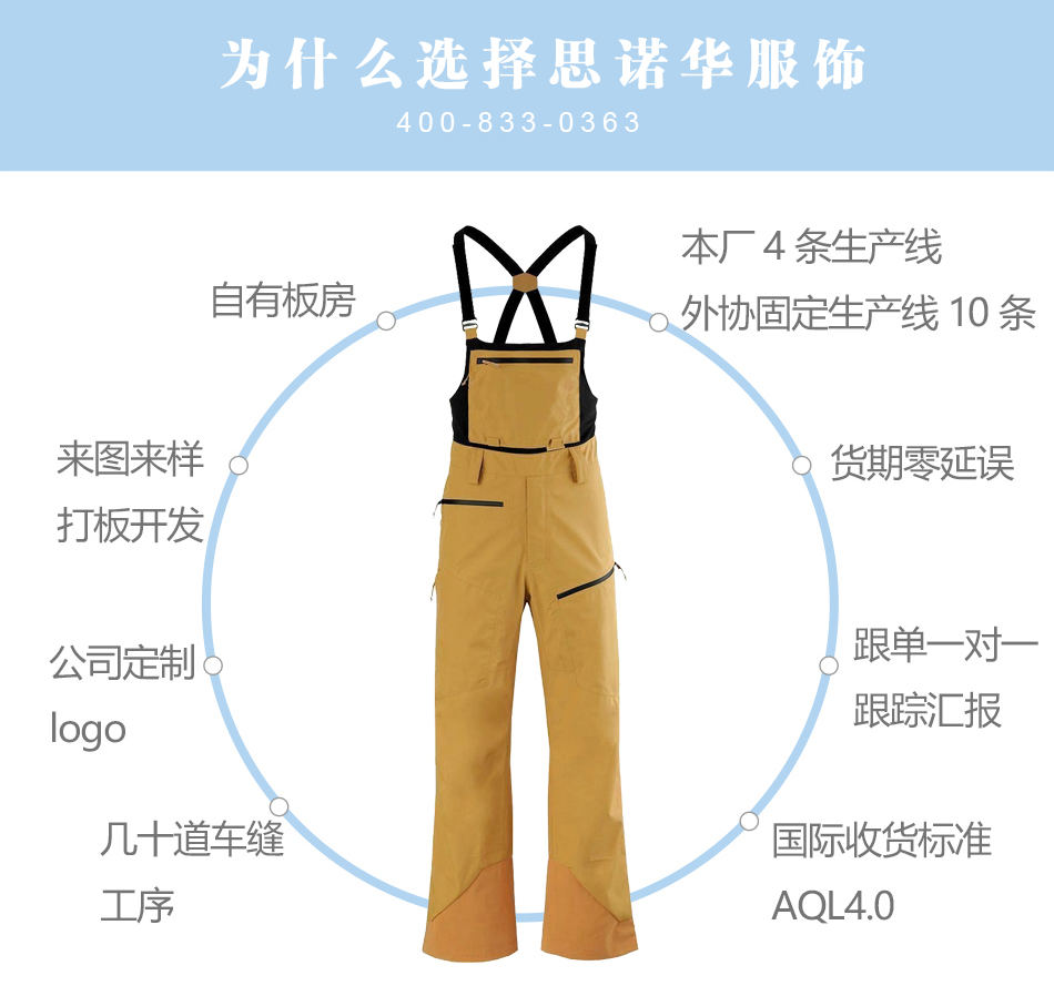 思諾華服飾—廠家防水壓膠滑雪褲加工生產(chǎn)