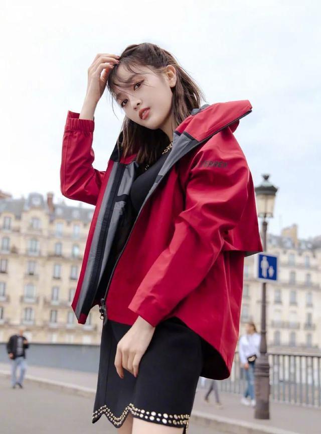 年輕人選擇沖鋒衣,不僅看上去帶有愜意休閑美,同時也會給人感覺一種灑脫動感的運動風。色彩鮮艷的單色沖鋒衣更能突出個性,沖鋒衣常用紅色面料,這類款式非常適合皮膚白皙的妹子們來穿,能夠突出服裝的艷麗色調(diào)之美,同時也要總體穿著看起來更加就高端。內(nèi)搭黑色簡約打底衫,突出休閑氣息。