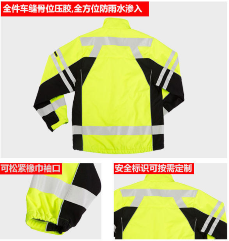 相對(duì)于老款的交警執(zhí)勤工作服,如今新款有很多優(yōu)點(diǎn):面料更防雨,白天熒光顏色更醒目,反光條面積的增加使夜間值班的保護(hù)效果更好。例如,我們【佛山思諾華服飾公司(睿牛制衣)】為某單位定制的沖鋒衣工作服的布料為三層復(fù)合布,是一種高性能防水防風(fēng)透濕功能性面料,面料有兩個(gè)關(guān)鍵指標(biāo):透濕量每24小時(shí)每平方米超過10000克,防水壓超過20000毫米水柱。