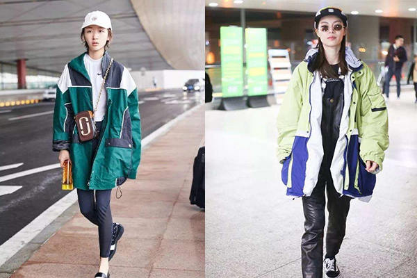 超大碼的沖鋒衣如果搭配不好就會顯得過于臃腫,那么一定要記住上寬下窄的原則?!岸炭?高腰”是永遠不可拆散的好搭檔,瞬間可以把上下身比例拉成3:7,同時記得選擇沖鋒衣時,也要get住這一點哦,拒絕合身形的,大大的版型才是王道,下身要搭配利落的小腳褲才有型,避免過于臃腫肥大的搭配。如果這時再踩一雙有跟的踝靴,你就是街拍的焦點。將領(lǐng)口拉大,秀一把鎖骨。當(dāng)然如果下身搭配超短褲露出大長腿,也可以達到拉長身形的效果。